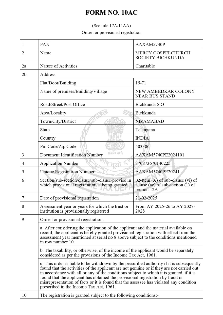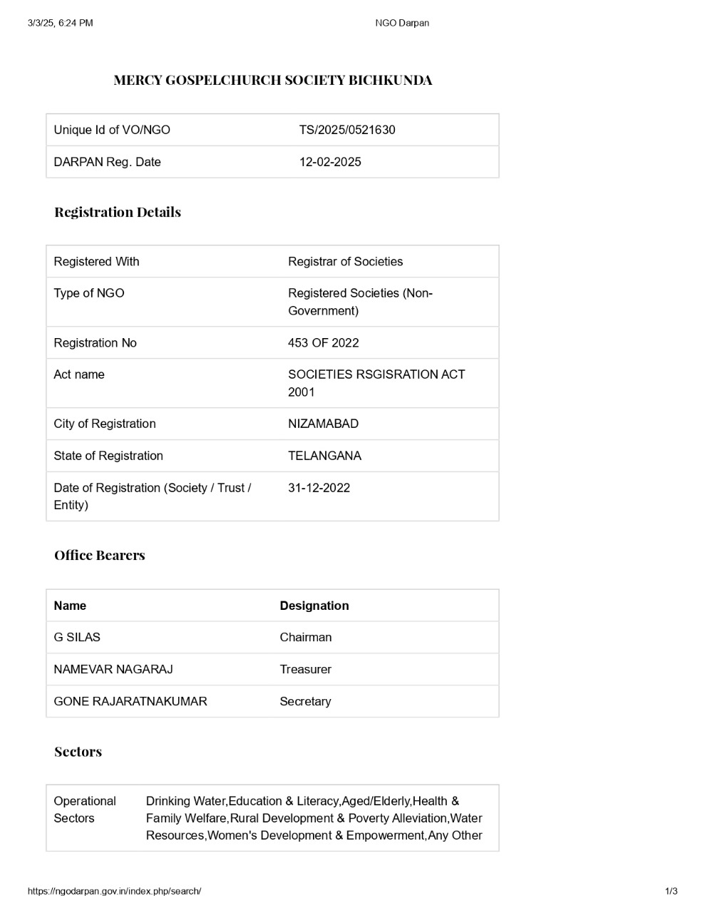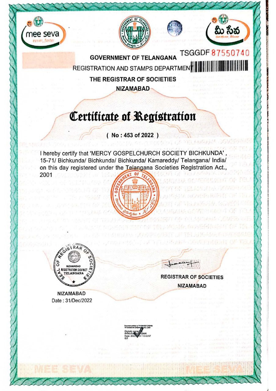 The MERCY GOSPELCHURCH SOCIETY BICHKUNDA